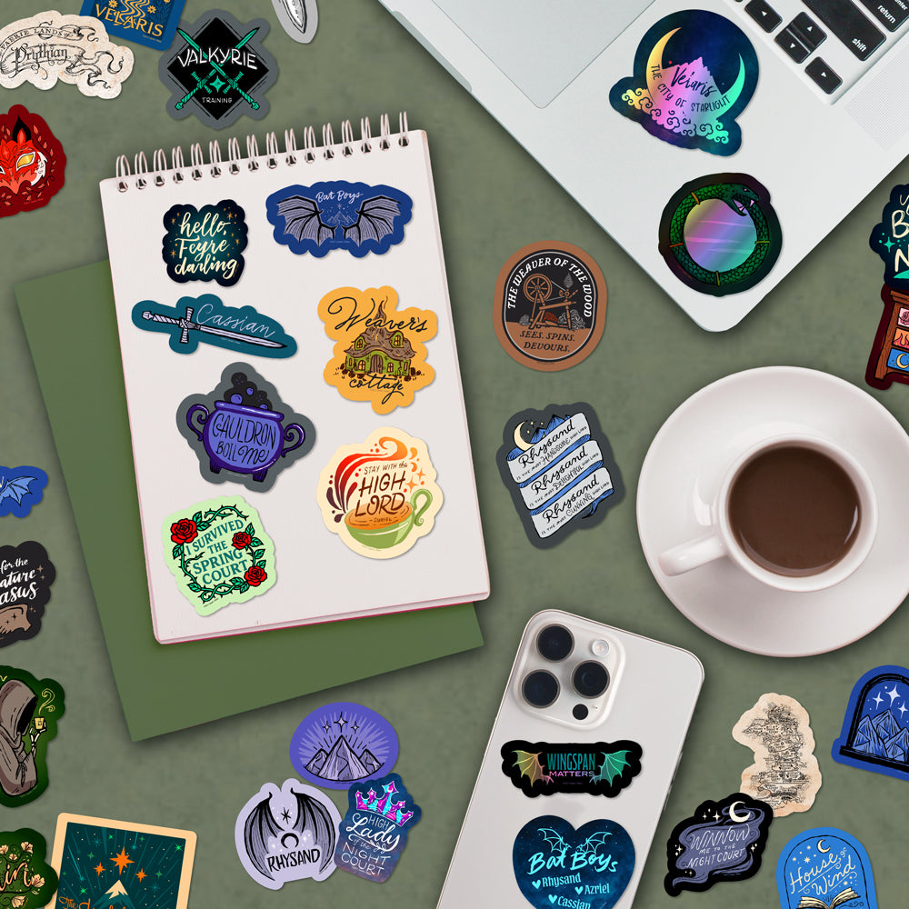 Featuring Rhysand, Feyre, Cassian, Nesta, and even the Suriel (yes, the tea is piping), this ACOTAR sticker set is packed with spicy moments, subtle shade, and inside jokes only true Sarah J. Maas fans will catch. Our decals are waterproof, scratch-proof, and UV-resistant – because your emotional damage should last... and so should your stickers.