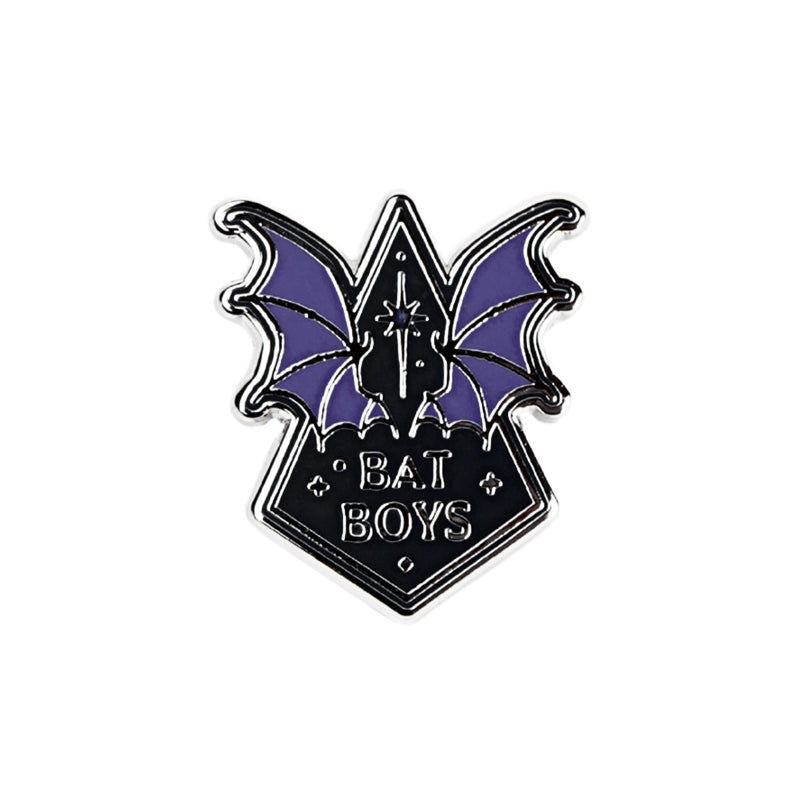 Velaris. The Bat Boys. Cauldron Boil Me. The perfect set of 3 Officially Licensed A Court of Thorns and Roses Enamel Pins with shimmering silver plating and beautiful violet accents. Crafted with high-quality hard enamel, these ACOTAR pins are a must-have accessory for your jacket, backpack, or tote bag, or for display on your pin board or bookshelf.