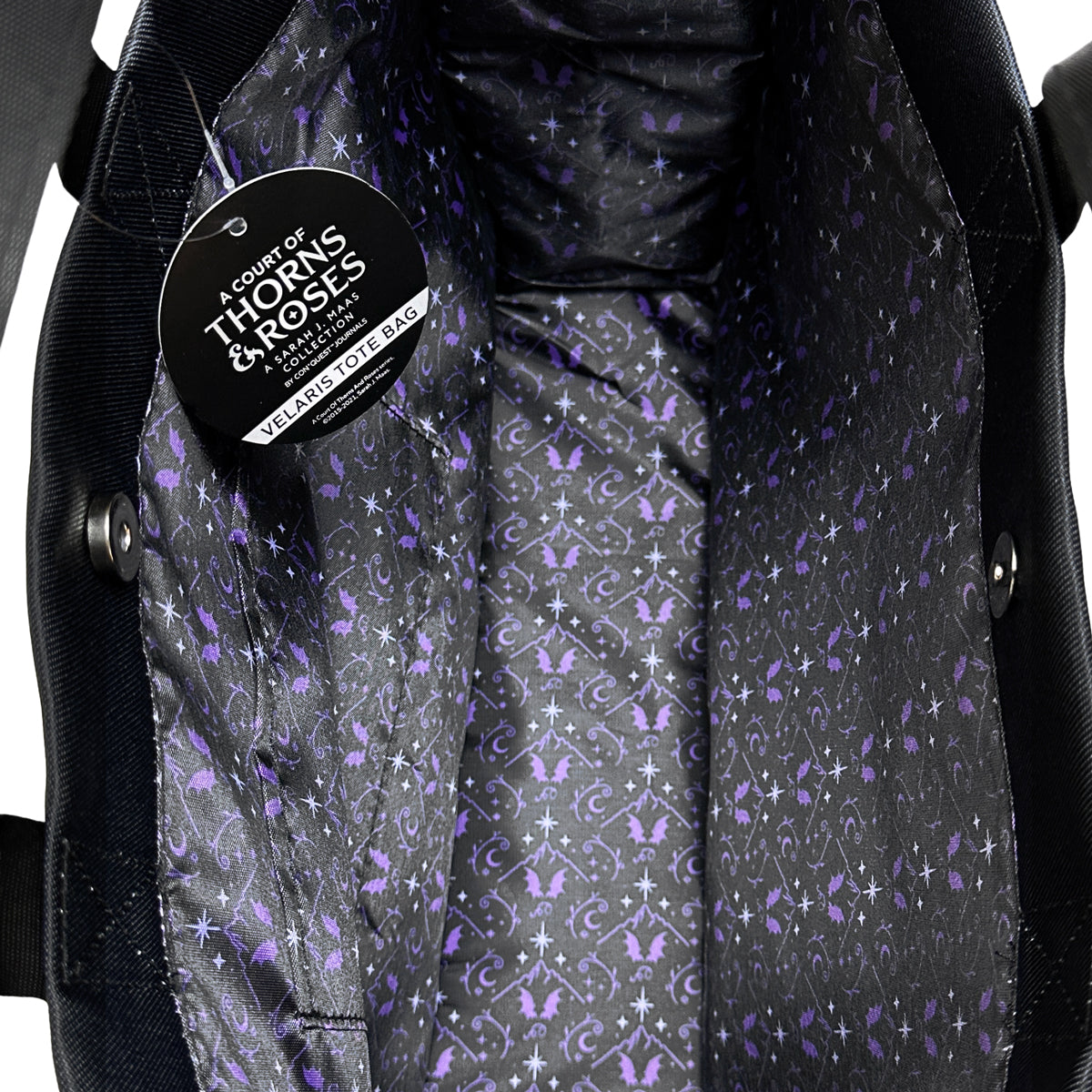We've made the perfect tote bag for shopping the market squares of Velaris and stopping by the House of Wind to grab a book! Featuring our bespoke nod to Velaris artwork, this sturdy Officially Licensed A Court of Thorns and Roses Night Court Tote Bag features twin handles along with a removable 38'' adjustable cross-body strap.