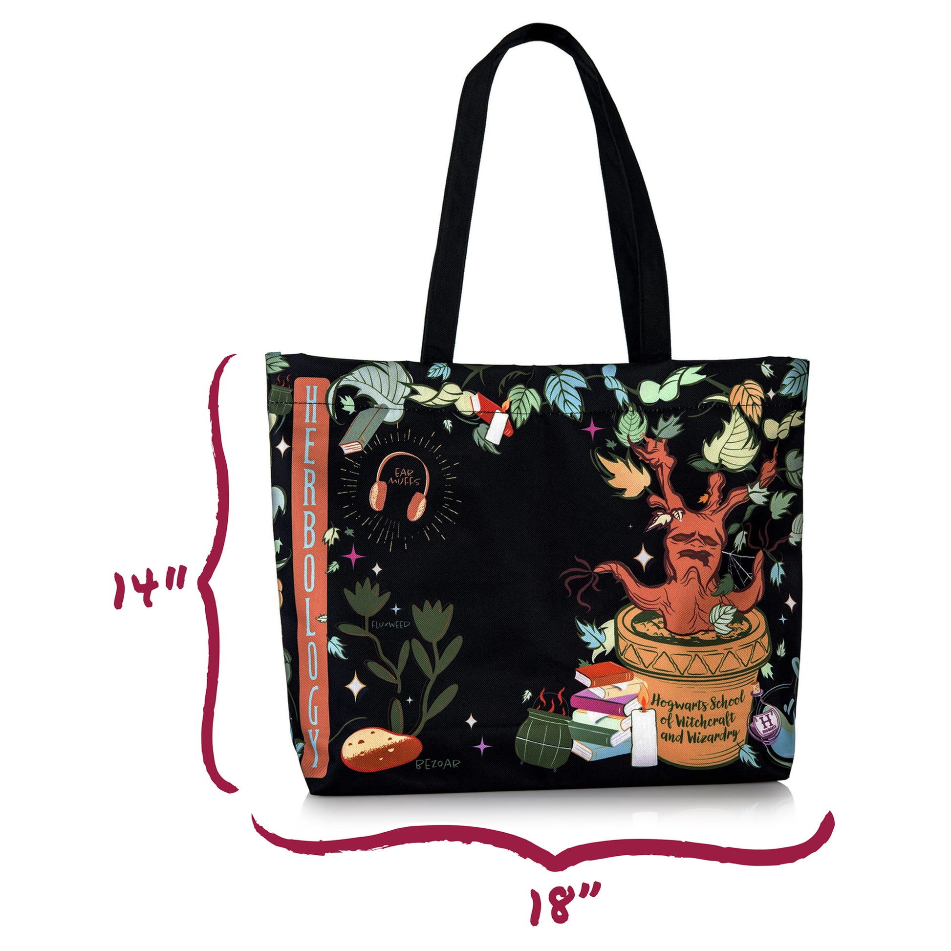 Time for Herbology! And you have brought everything you need in our Herbology tote bag! It's the perfect planner companion plus more! The fun and bright Fluxweed inner lining features a pocket and wand loop. It's big enough for an overnight bag and light enough to carry every day!