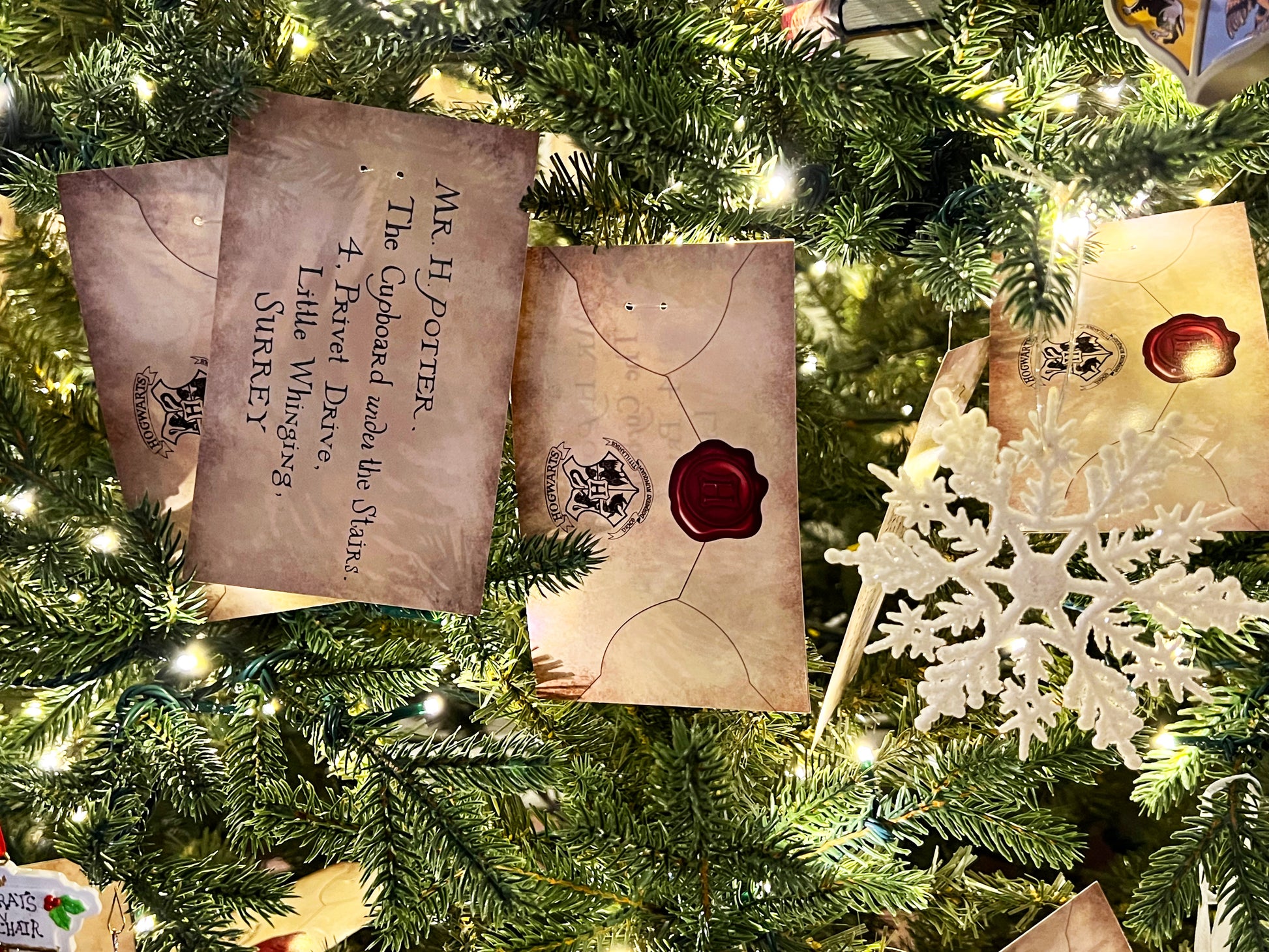 - Full-color Harry Potter Floating Hogwarts Acceptance Letter Cards featuring Harry's address under the stairs on one side, and the Hogwarts crest with printed seal on the other side