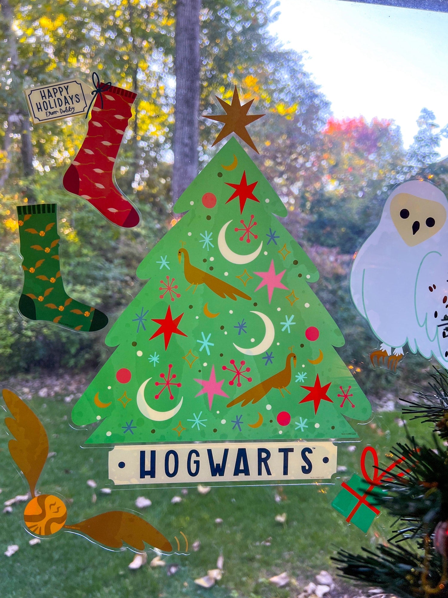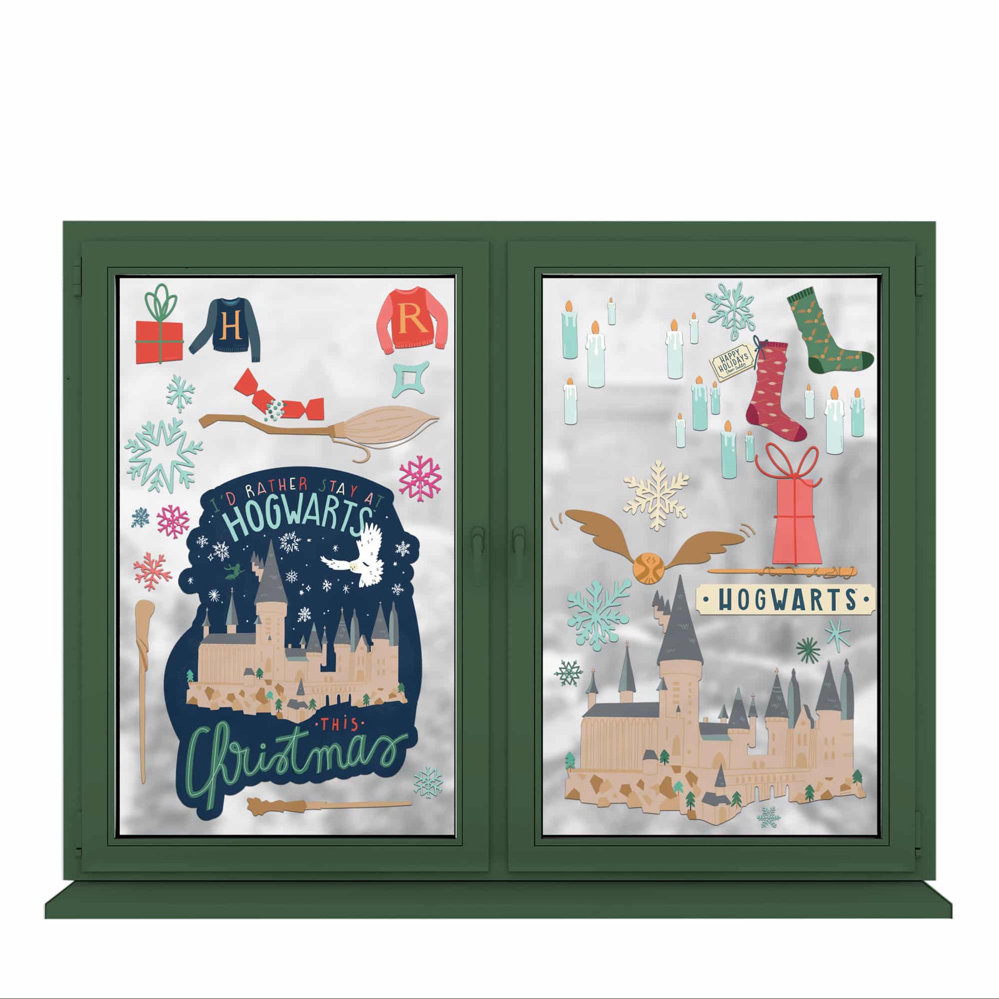 Have you wanted to be in the Great Hall during the holidays? Now you can bring that magic to your own home with our Holidays at Hogwarts Window Cling kit! Featuring holiday-themed iconic images like Hogwarts at Christmas, the sweaters knitted by Mrs. Weasley, the Hogwarts Crest Wreath, snowflakes, and floating candles, this kit includes over 50 individual window clings. Made from waterproof PVC, the designs can be seen on both sides of the window. Simply peel and stick these clings to any smooth surface like mirrors and windows, then remove them without residue!