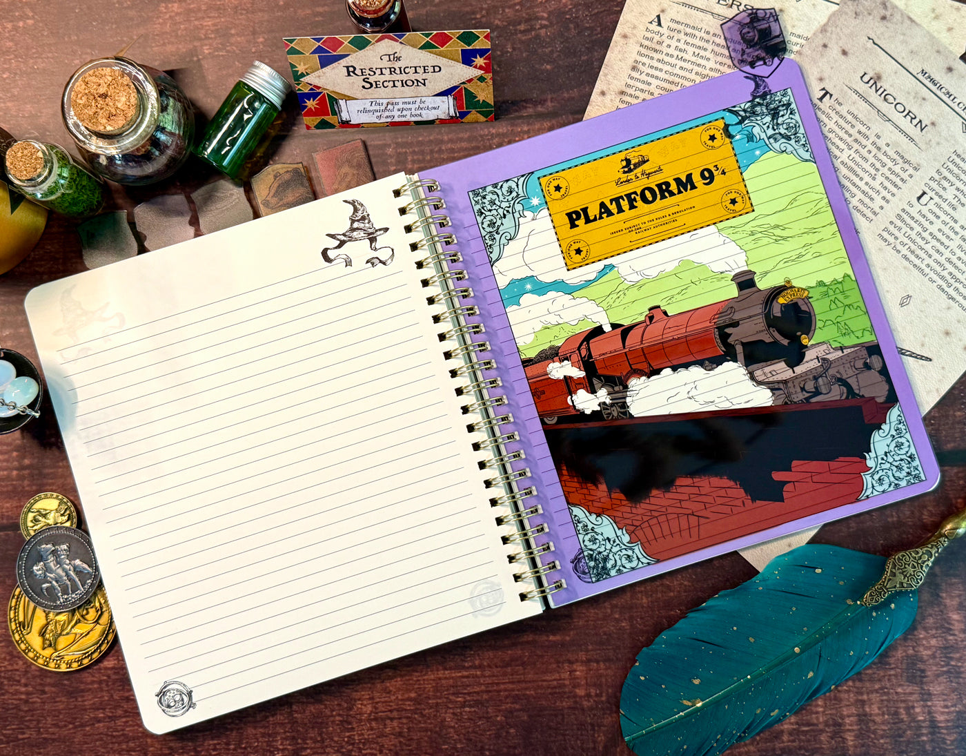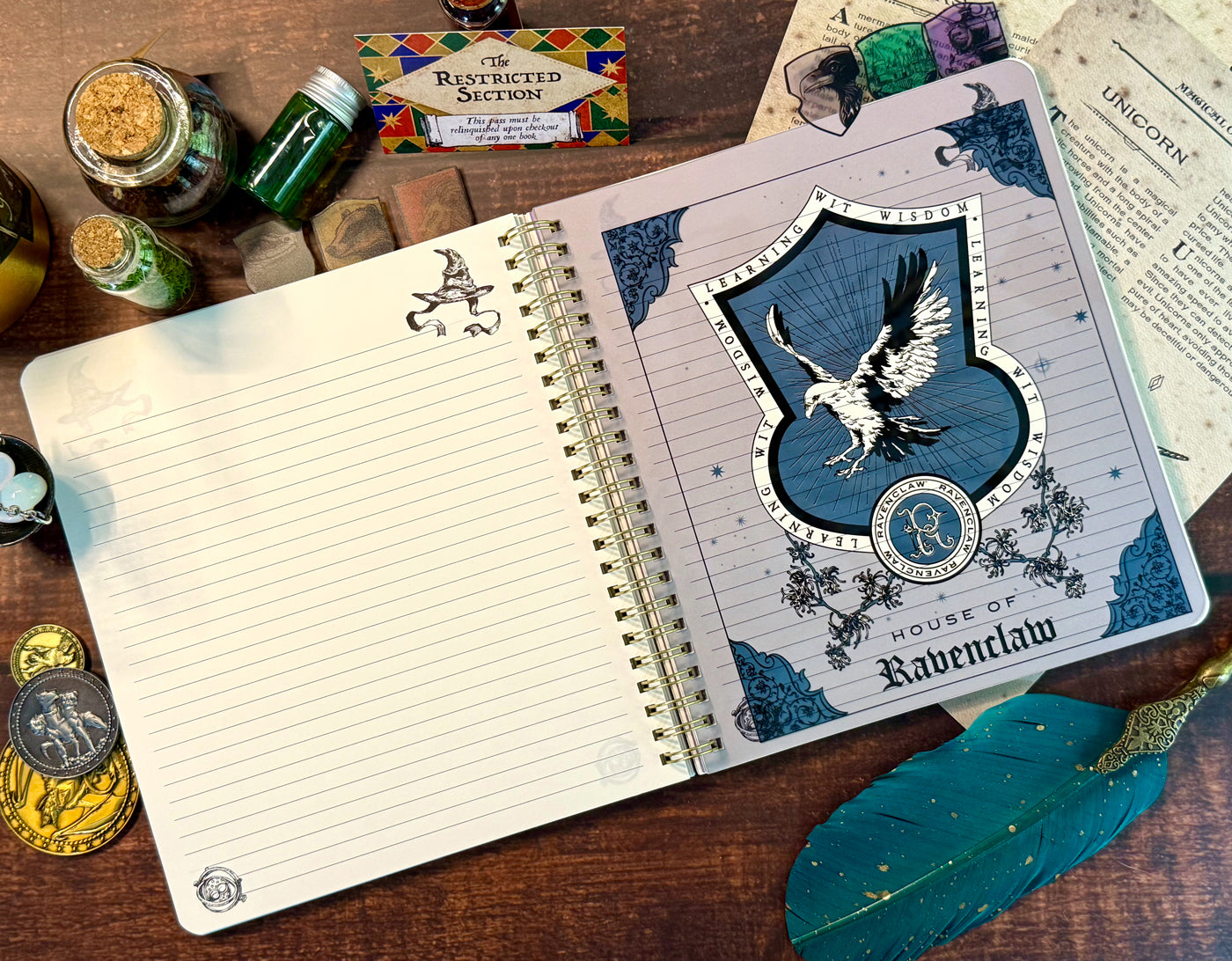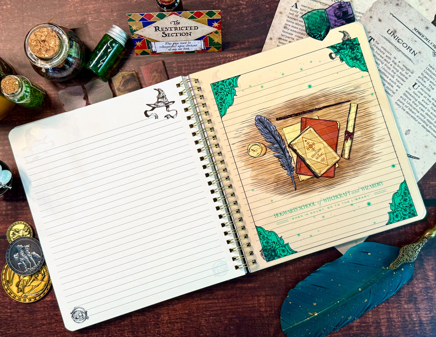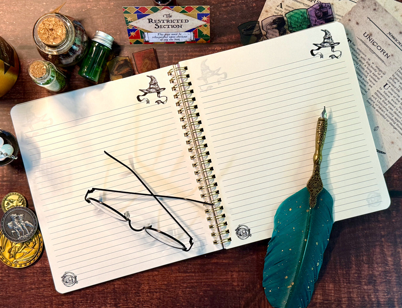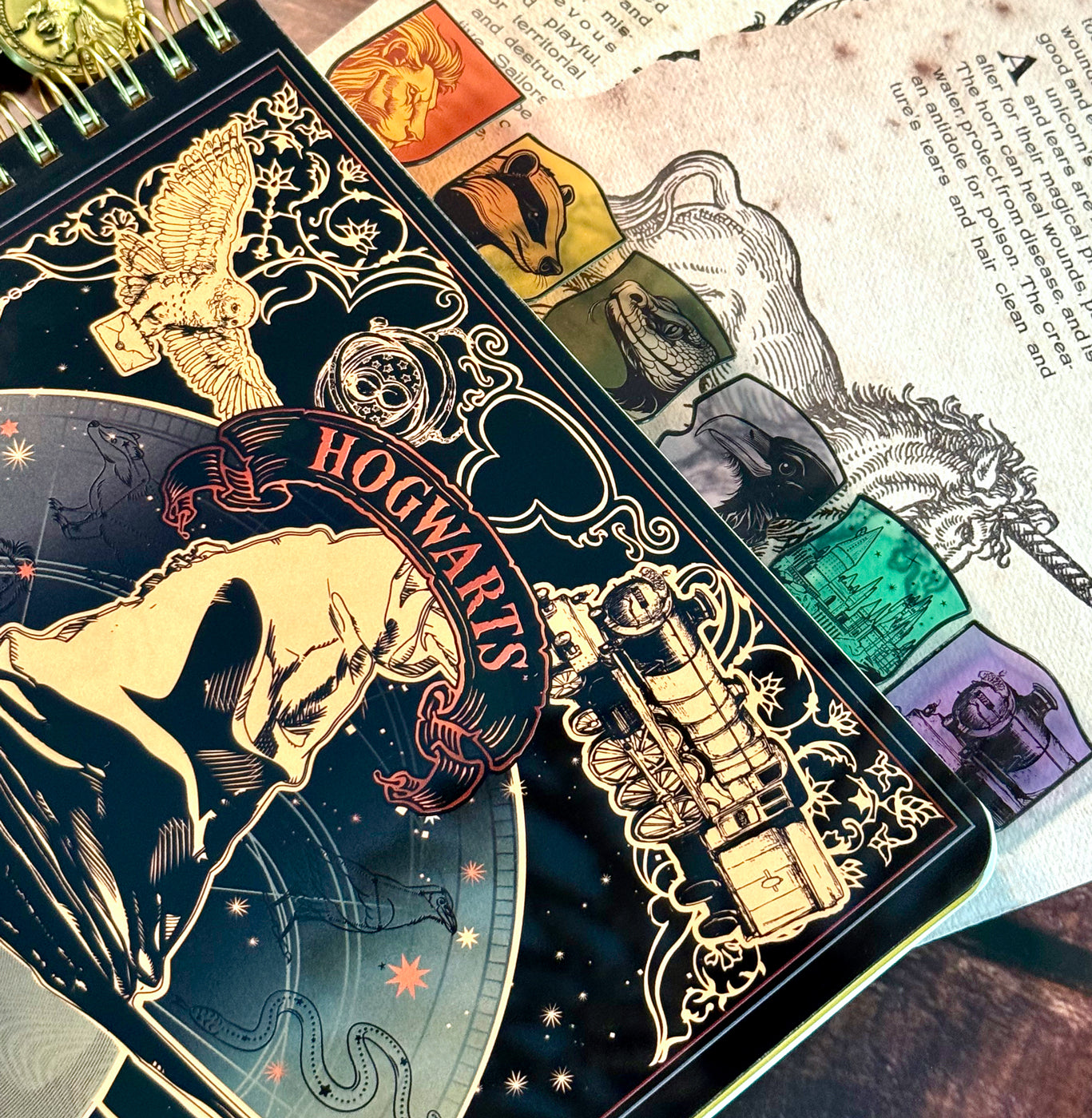 Introducing the Officially Licensed Harry Potter Sorting Hat Tabbed Journal from Con*Quest Journals, the perfect complement to our 2026 Harry Potter Enchanted Days Planner (Digital Version now available) & Wall Calendar! This enchanting, functional journal makes it easy to capture everything from spells and potion recipes to daily musings and to‑do lists. Measuring 8'' x 7'', this Harry Potter Journal features twin‑loop wire binding, rounded corners, and a protective plastic cover.