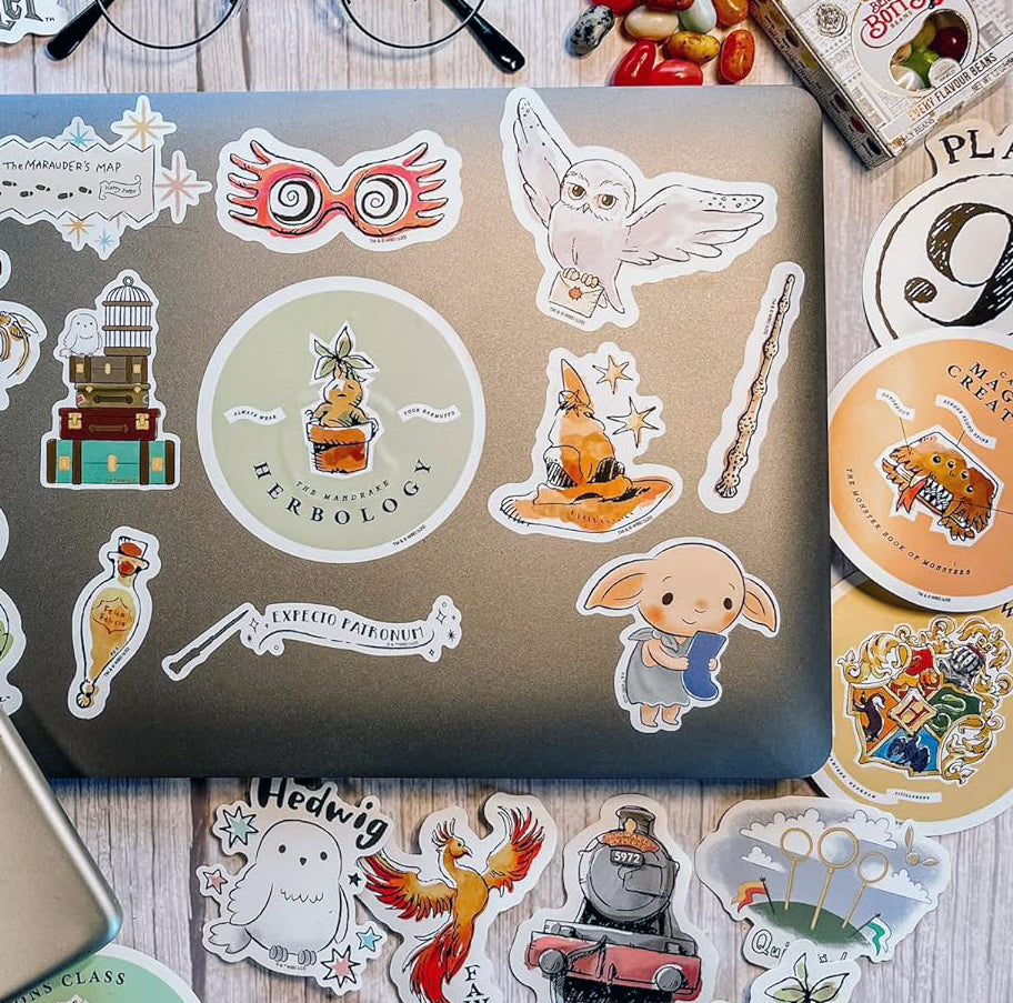 Set of 60 Harry Potter Watercolor decals in sizes ranging from 2'' to 3.5'' feature your favorite iconic Harry Potter themes in beautiful watercolor designs! Platform 9-3/4, The Hogwarts Express, Potions, Cauldrons, Hedwig, the House Mascots, and more! These waterproof vinyl decals are weather, UV, and scratch-resistant! Potterfy your laptop, phone, car, and gadgets with a little magic!