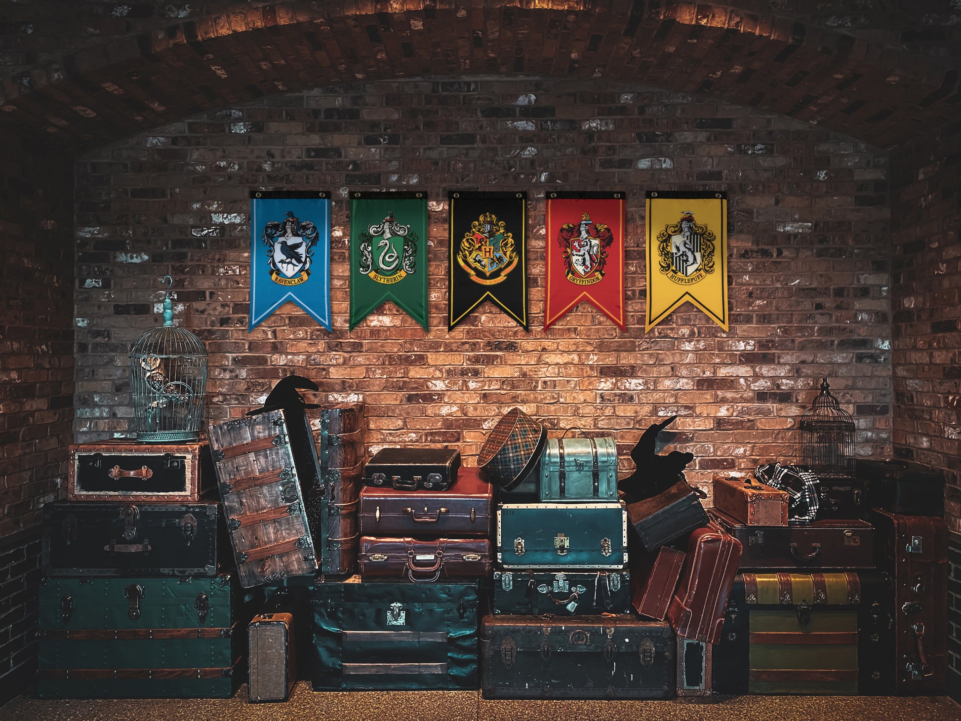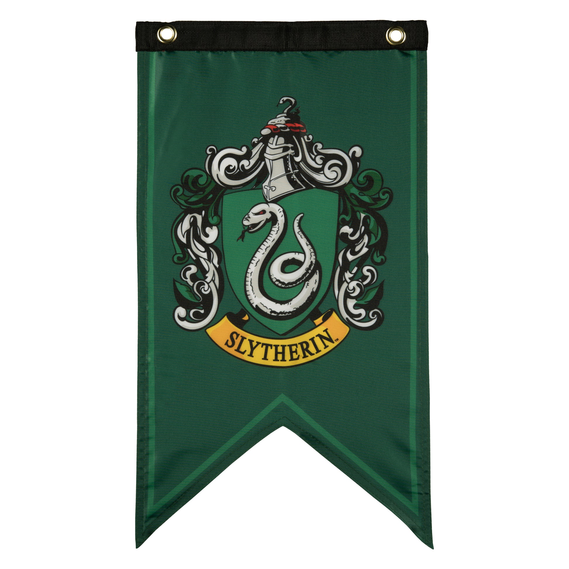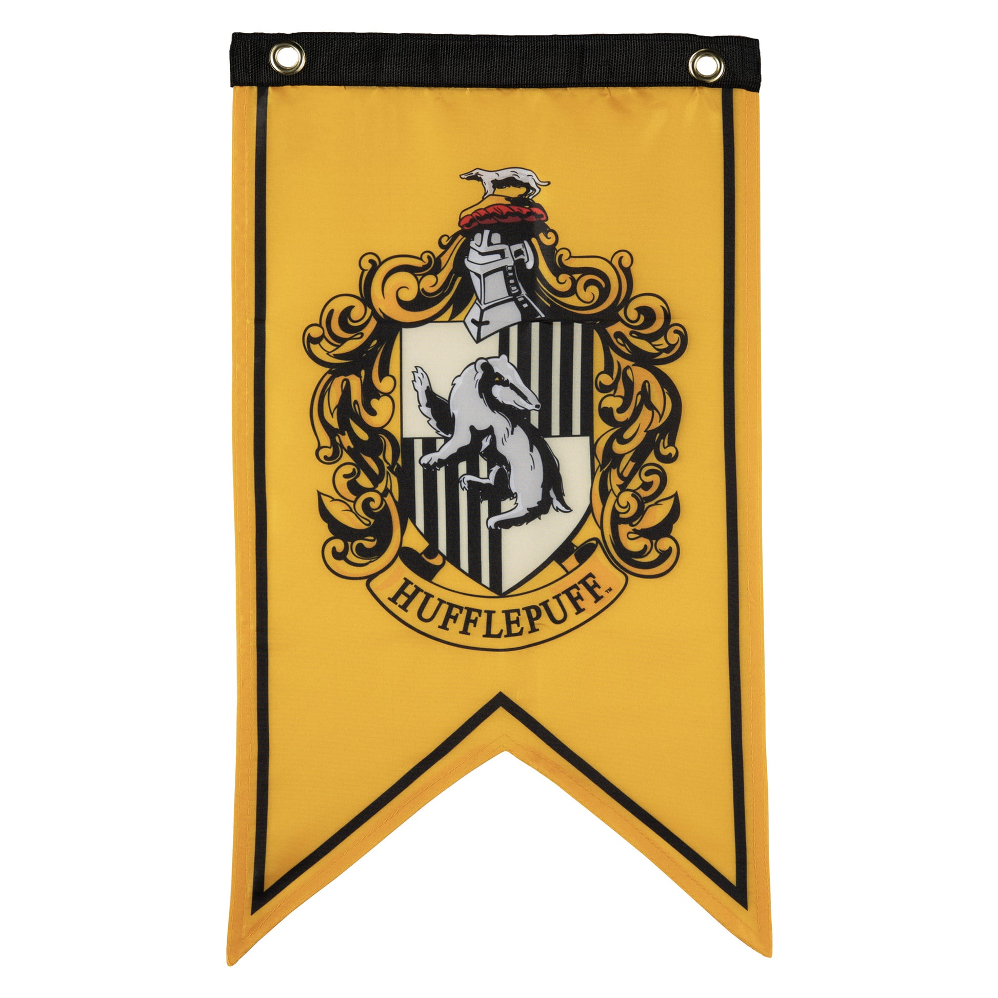 - Flags feature the iconic crests of Hogwarts, Gryffindor, Slytherin, Ravenclaw & Hufflepuff