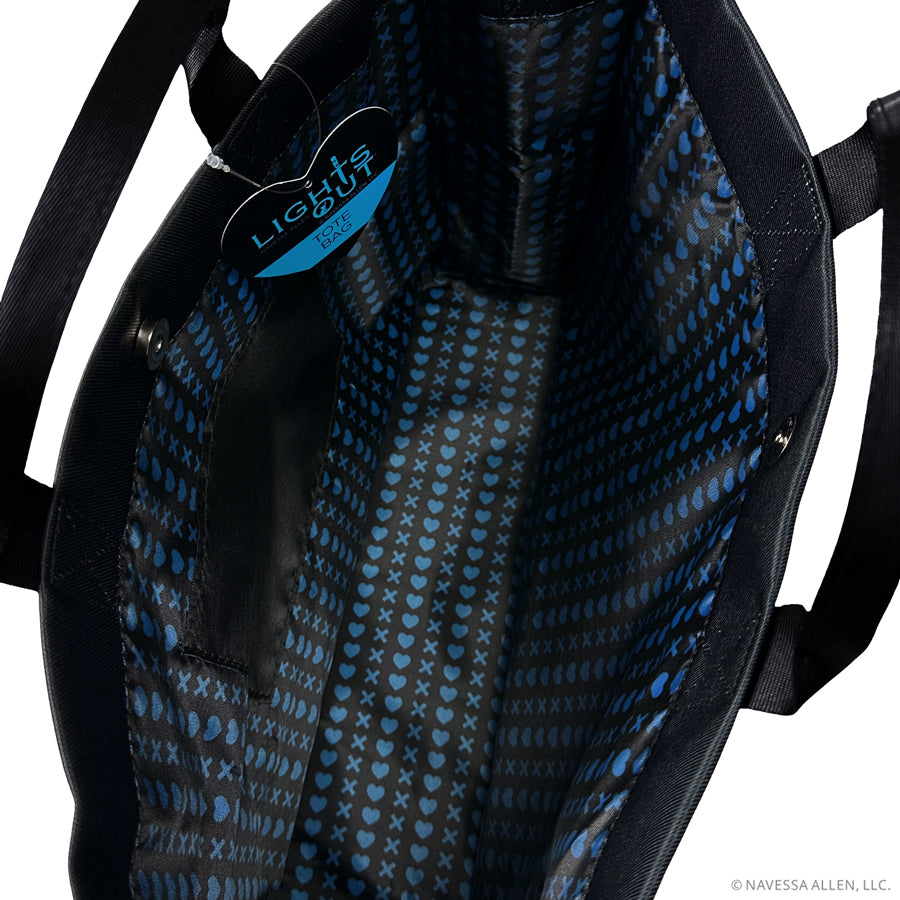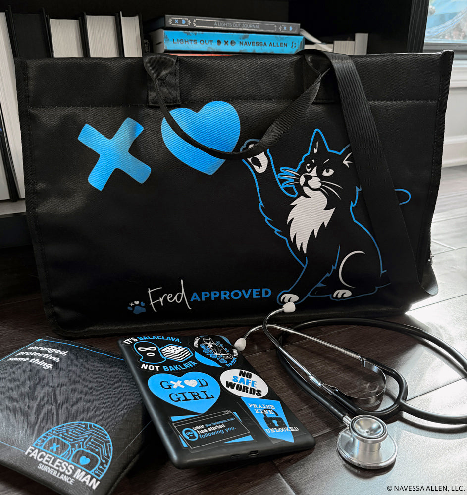 Spicy reads deserve a dangerous tote. Designed for maximum chaos and carrying capacity (duct tape?), this Officially Licensed Lights Out Tote Bag is definitely "Fred Approved". With a secure snap closure plus a roomy interior for all your books, snacks & emotional baggage, this tote bag is perfect for fans of Navessa Allen's best-selling dark romance book series.