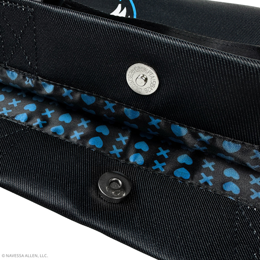 Inside? A wickedly cute "✖️ + 💙" patterned lining. Outside? Black polyester fabric that's printed and ready for play. The removable 38'' adjustable crossbody strap gives you options – whether you're sprinting from your TBR pile or waltzing into your next morally gray obsession.