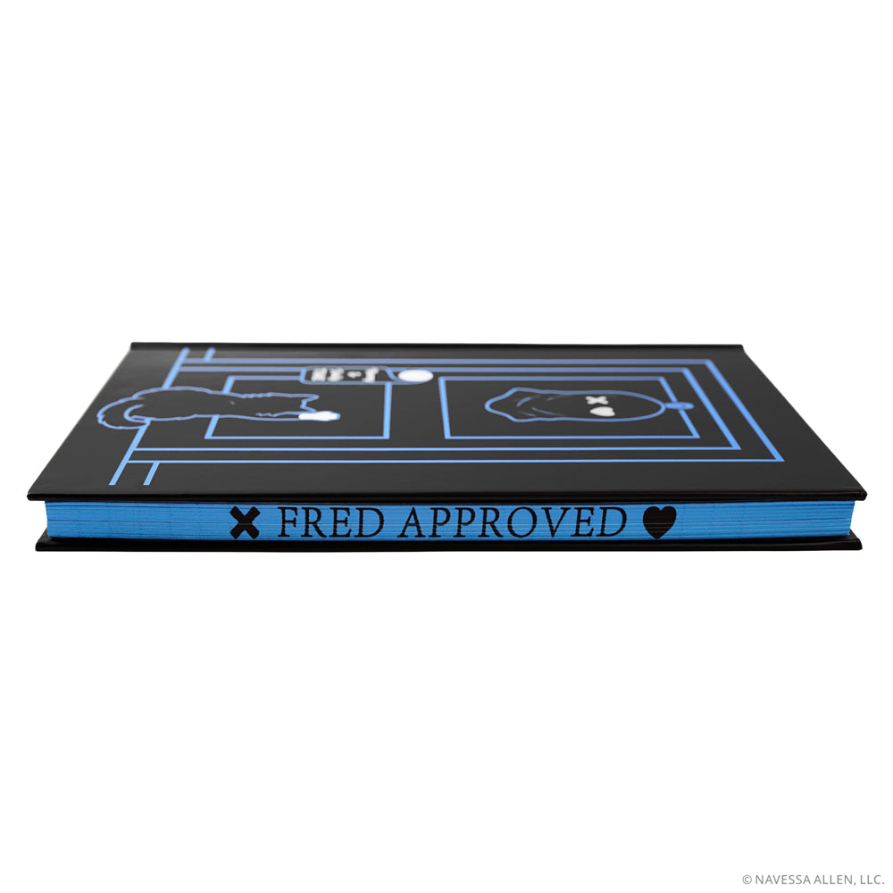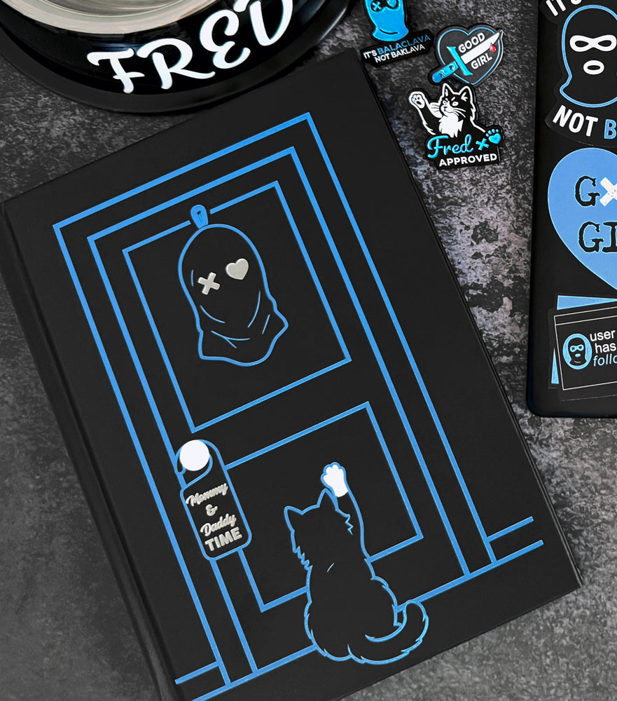 You've read the spice – now journal about it... with Fred watching, of course. This dangerously delightful Officially Licensed Lights Out Journal features silver foil details on the front cover (Mommy & Daddy Time!), "Fred Approved" blue sprayed edges, a hardback cover, lined pages, plus your favorite chaotic cat lurking inside the pages to judge your every thought.