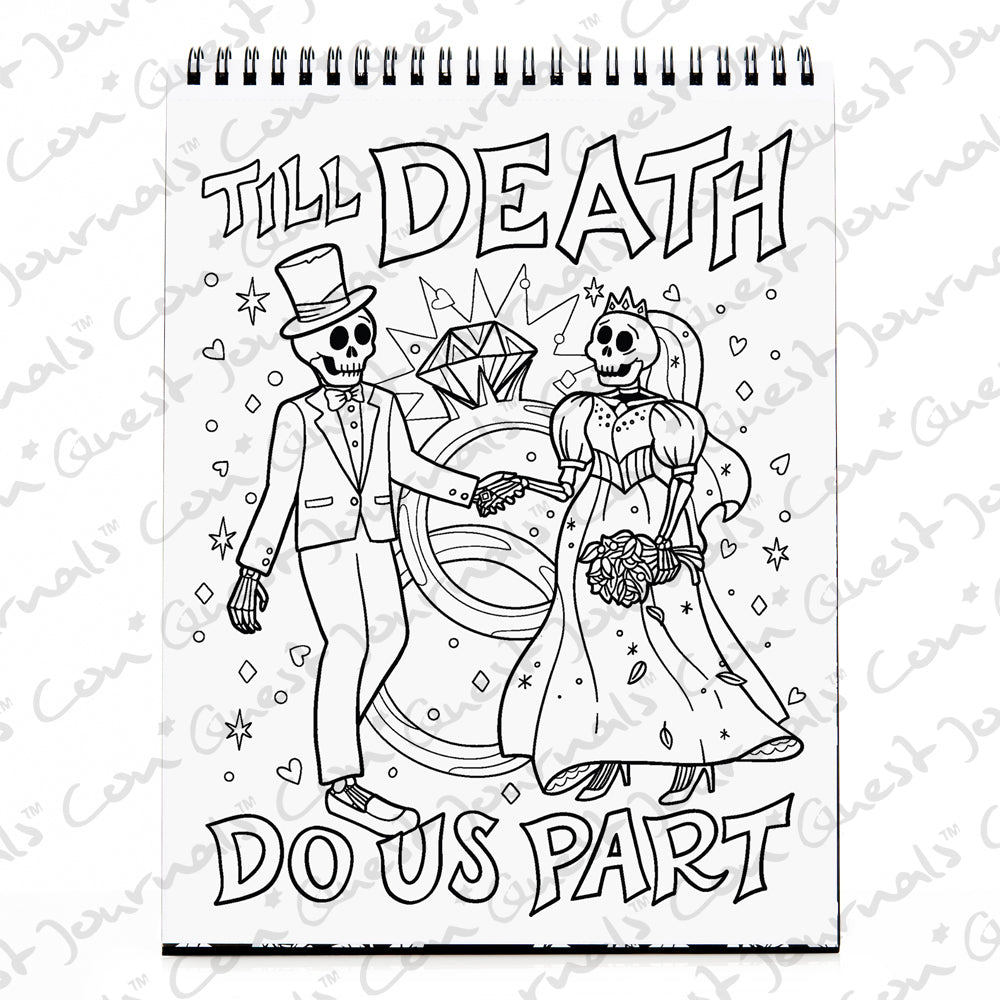 Embrace your dark romantic side with our Waiting for the Night Gothic Love Coloring Book, where eerie meets enchanting. Measuring 8'' x 10.5'' with a top spiral binding, each page is perforated for a clean 8'' x 10'' tear-off, perfect for framing or sharing your finished artwork.