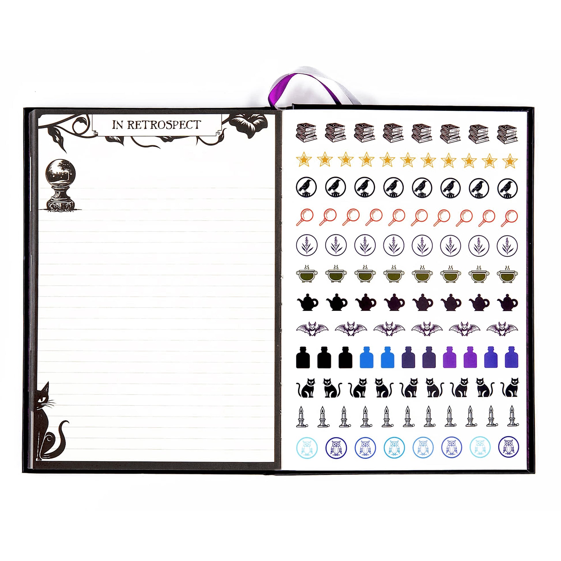 Includes silver foil detail on the cover, lay-flat binding, two ribbon page markers, and one bookish-themed sticker sheet.